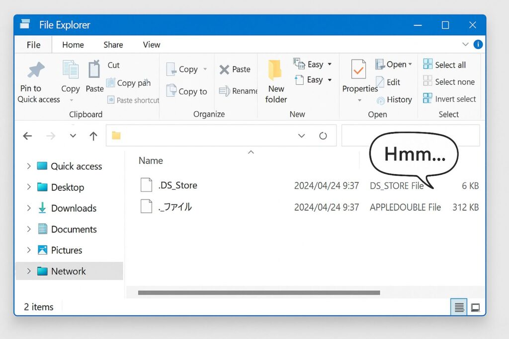 MacからNASなどのフォルダにアクセスすると、.DS_Store や ._ファイル(AppleDoubleファイル)が自動で作られてしまいます。