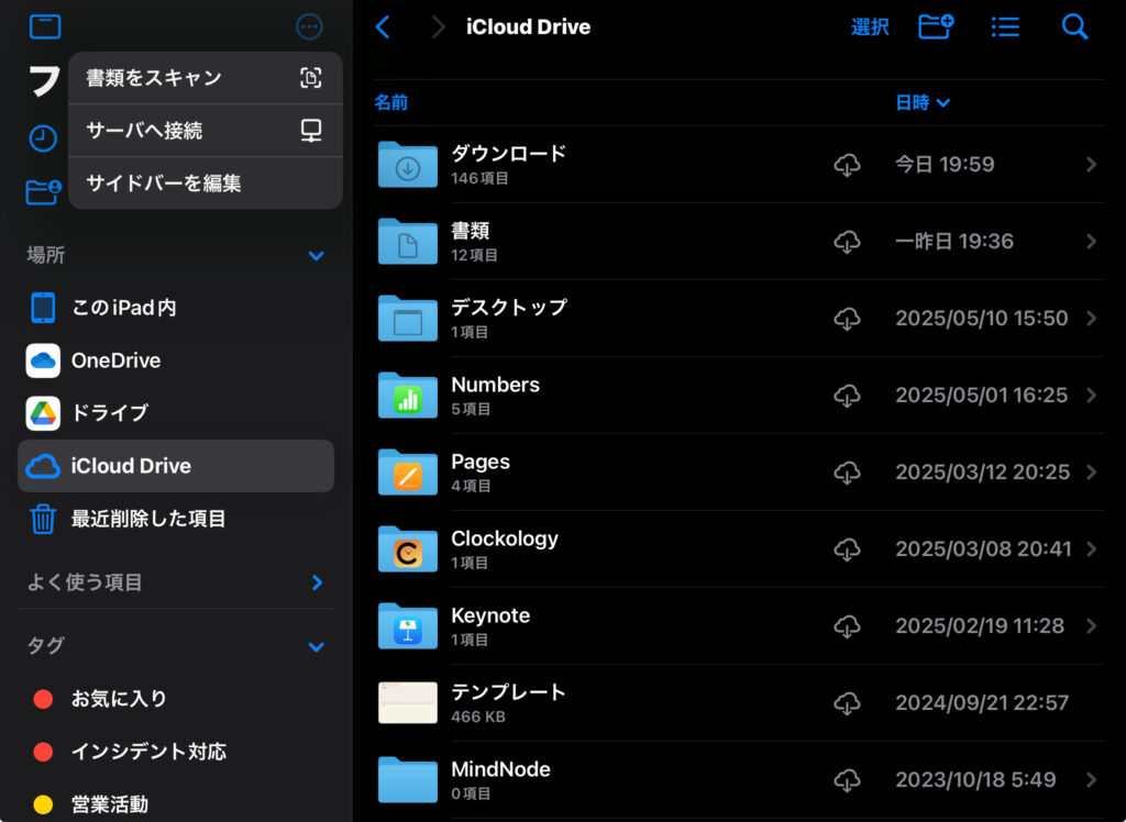 GoogleDriveやOnedriveアプリを入れればファイルアプリに自動的に表示されるようになり、複数のクラウドサービスを一元的に確認できるようになります。