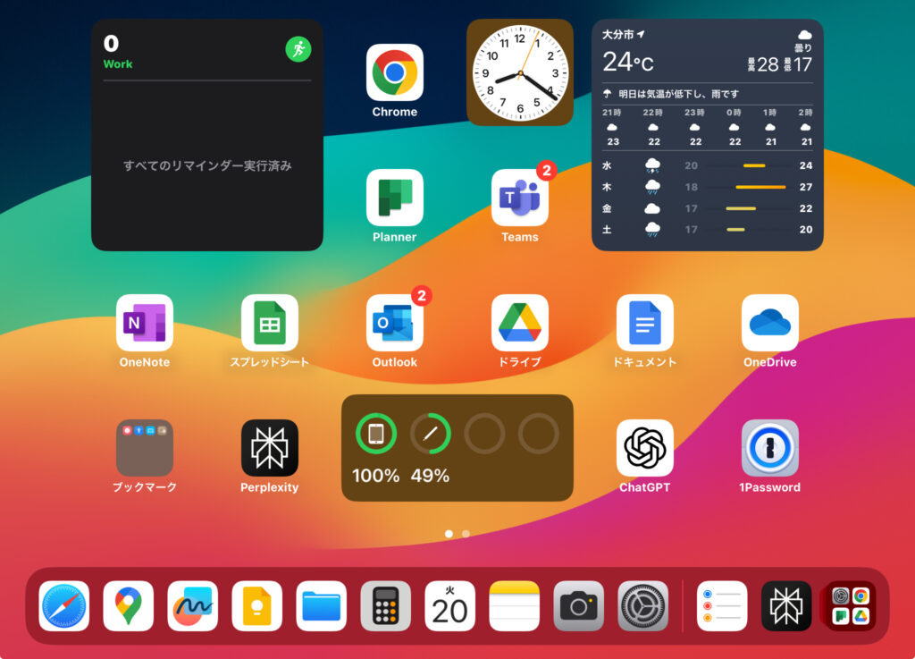 1画面目を仕事用に統一&ウィジェットで情報を可視化するだけで、iPad miniが一気にビジネス仕様に変わります。