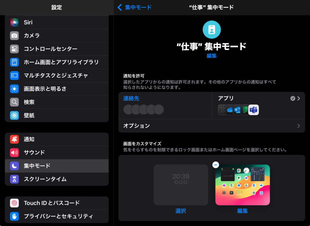 集中モードをシーンごとに分けて設定しておくと、必要な通知だけ受け取る静かなiPadが実現します。