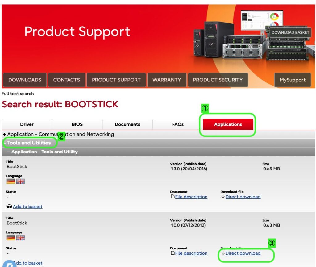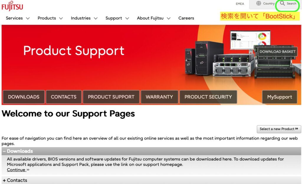 再び富士通サイトを開きます。