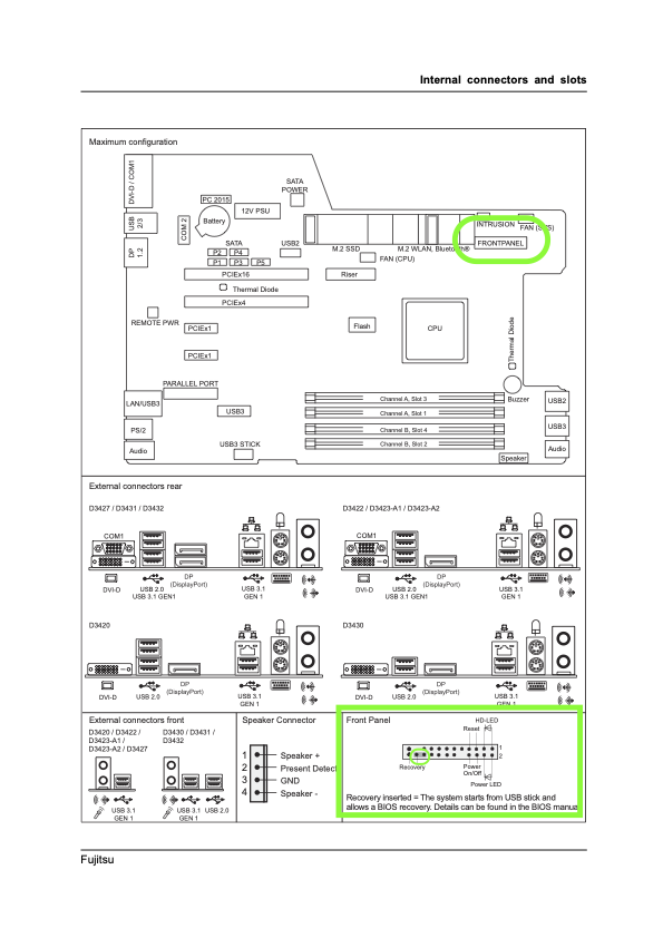 PDFのフロントパネルにある「Recovery」と記載があるグレーアウトされた2つのピンを接続します。